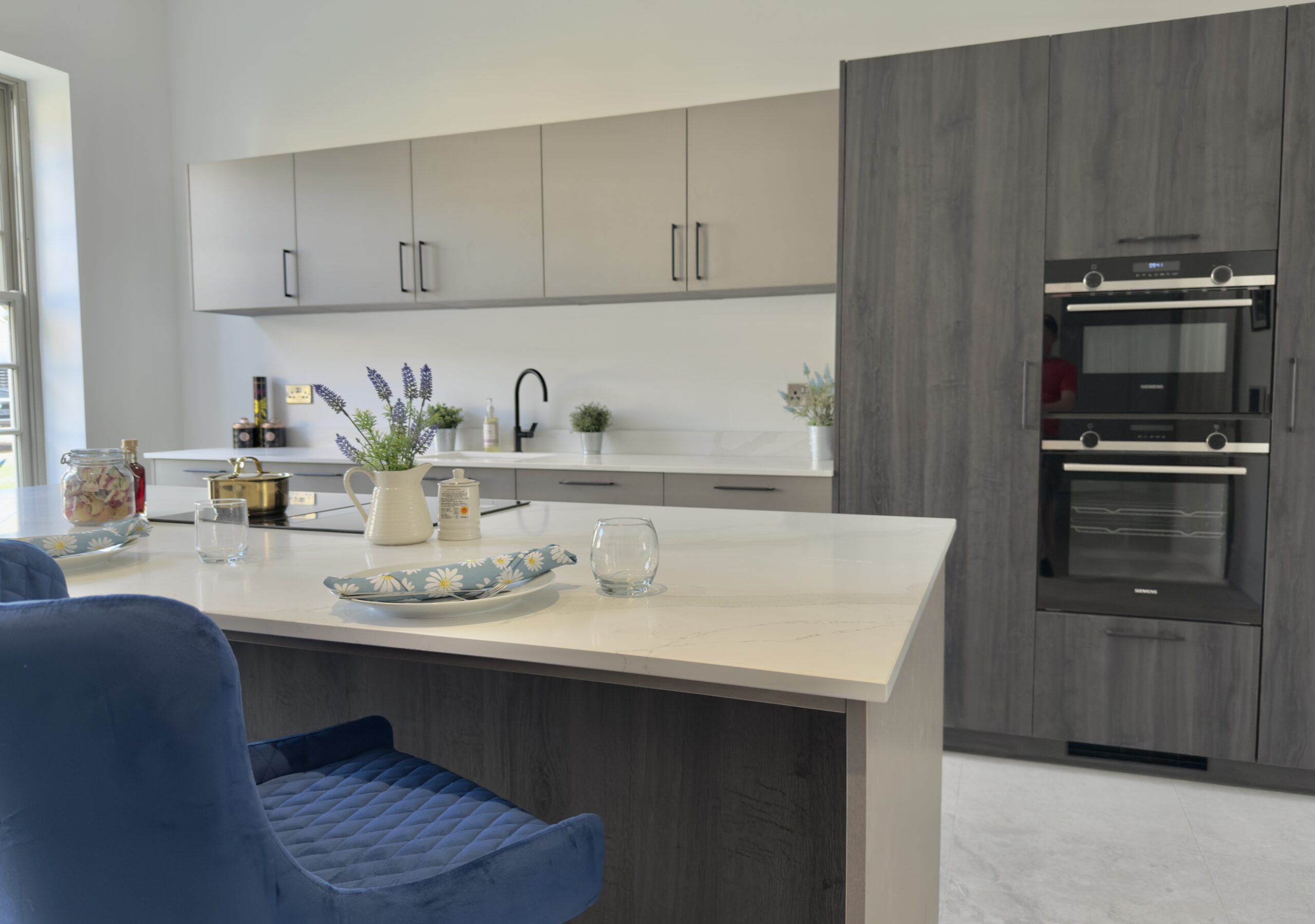 The kitchens showcase a sophisticated palette of premium materials and finishes. We selected Beckermann Trendline Alux Caviar base, wall, and island units for their sleek, modern aesthetic, beautifully contrasted with Beckermann Trendline Tessina Classic Sherman Oak tall units and display cabinets that add warmth and character. For alternative schemes, we incorporated Beckermann Alux Champagne base units paired with striking Beckermann XTreme Black back panels, creating dramatic visual impact. Each kitchen features luxurious 20mm Natura Calacatta Gold Dust quartz worktops and upstands, delivering both stunning aesthetics and exceptional durability. The installations are completed with high-end Siemens integrated appliances throughout, innovative NikolaTesla induction hobs with recirculating kits for seamless ventilation, and elegant Clearwater sinks and mixers that provide the perfect finishing touch.