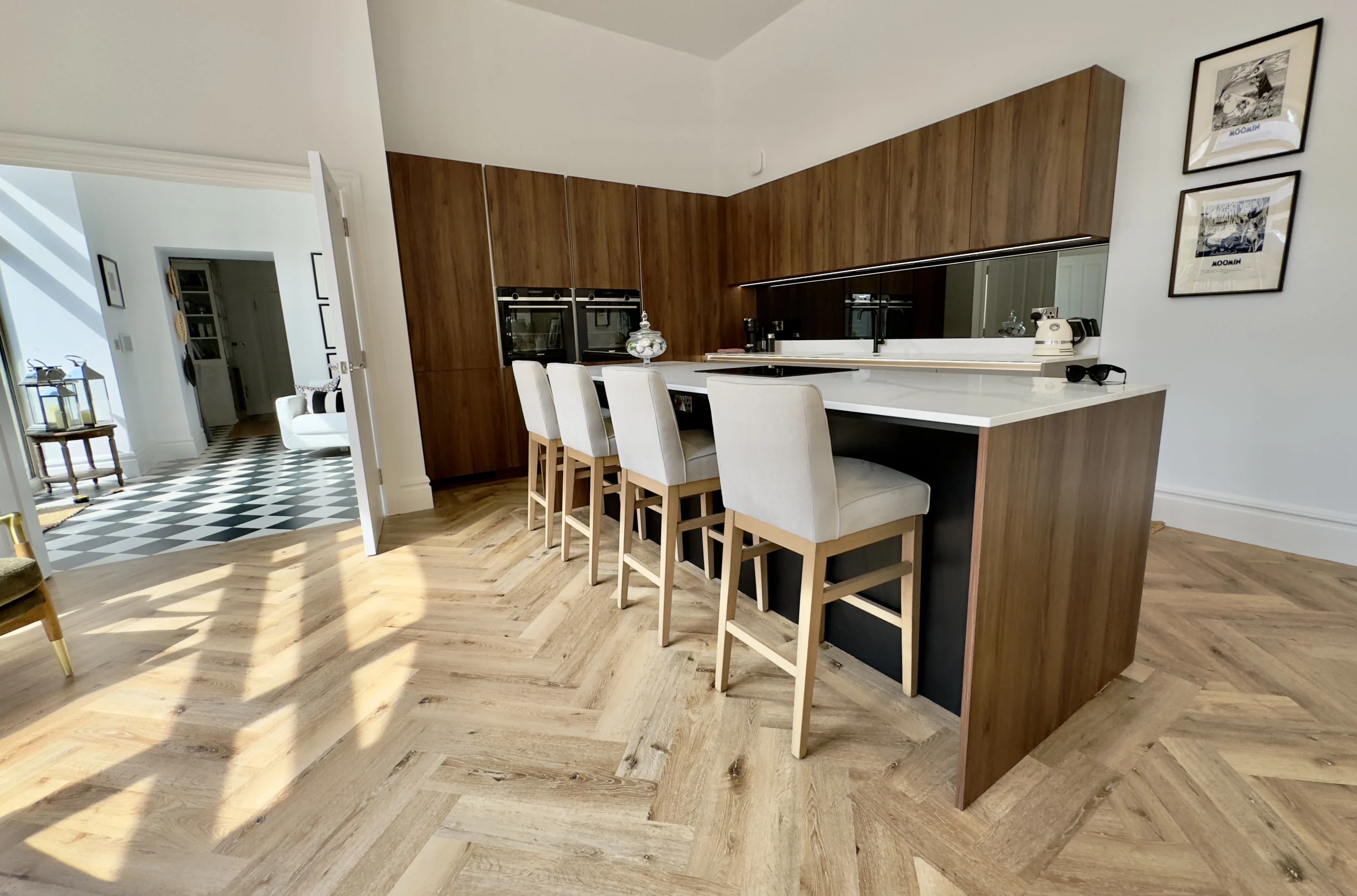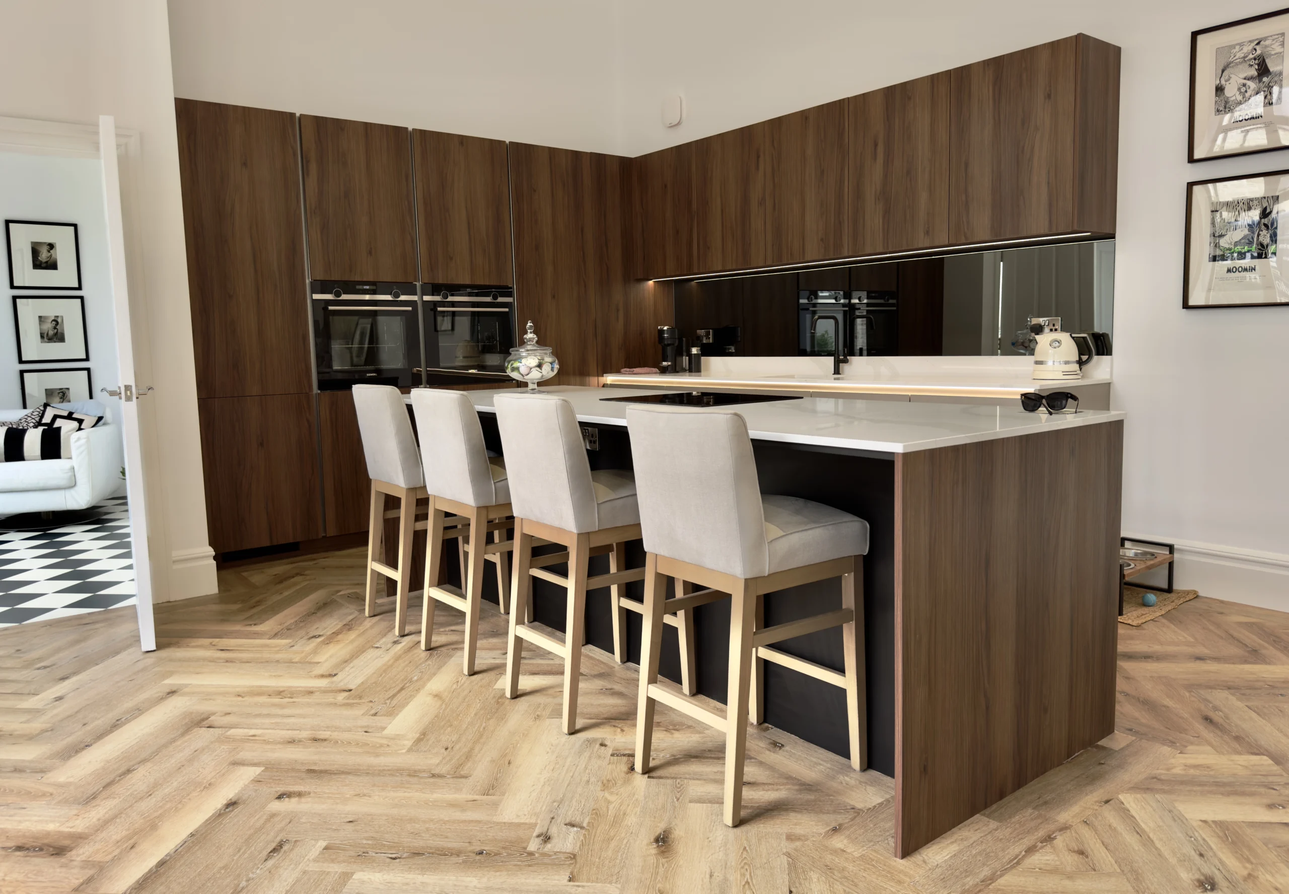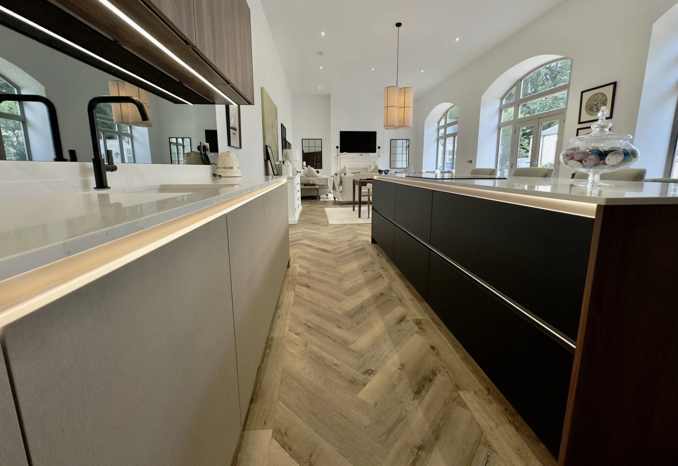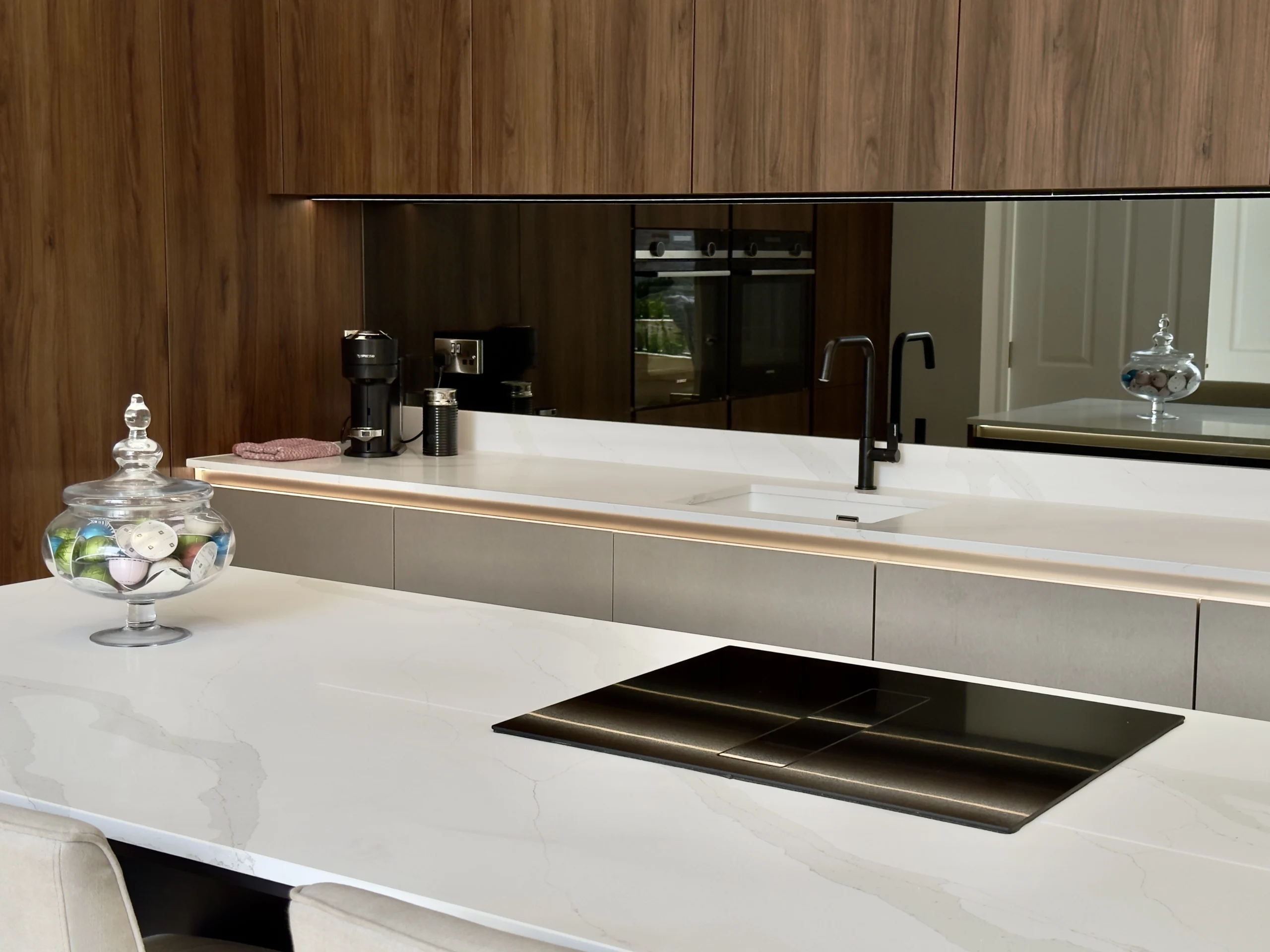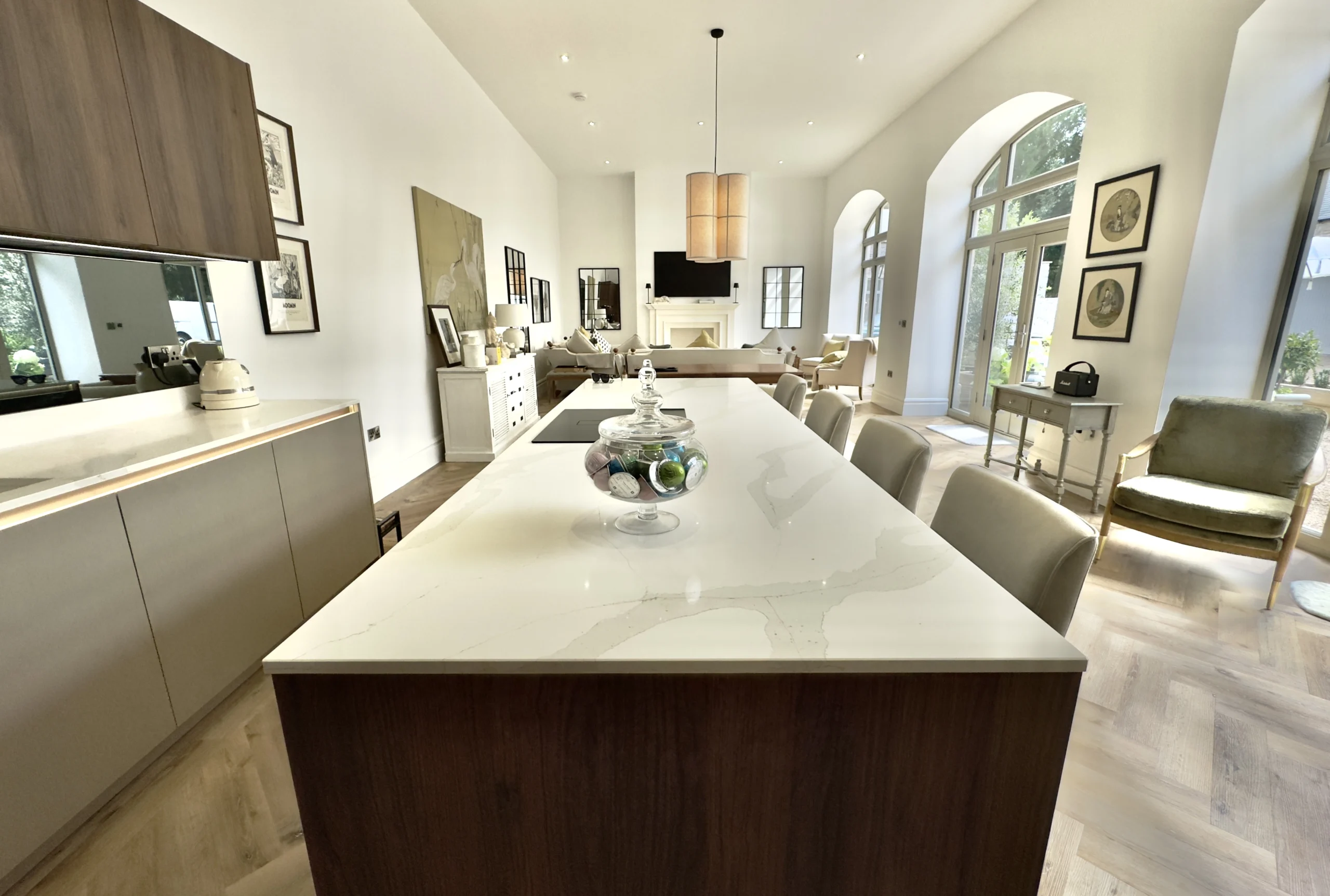With a completely blank canvas before us, we recognised that this kitchen needed to possess an extraordinary wow factor that would complement the exceptional quality evident throughout the rest of the property. To achieve this ambitious vision, we carefully selected premium Beckermann cabinetry and units, pairing them beautifully with sophisticated Natura Quartz worktops to create a space that would be absolutely perfect for entertaining guests in any capacity, whether intimate dinner parties or grand celebrations.